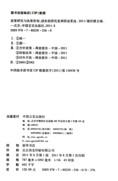 2011政策研究与决策咨询(国务院研究室调研成果选)