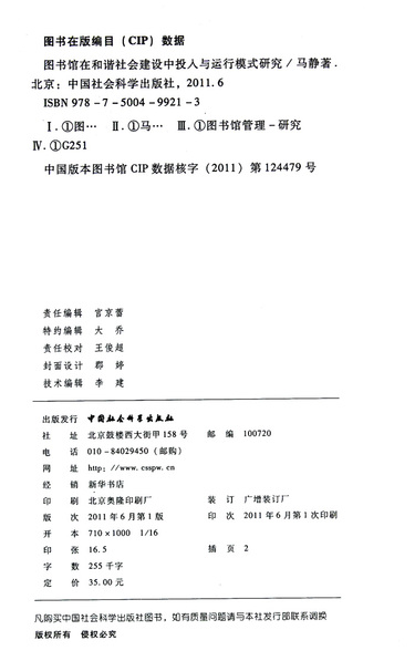 图书馆在和谐社会建设中投入与运行模式研究