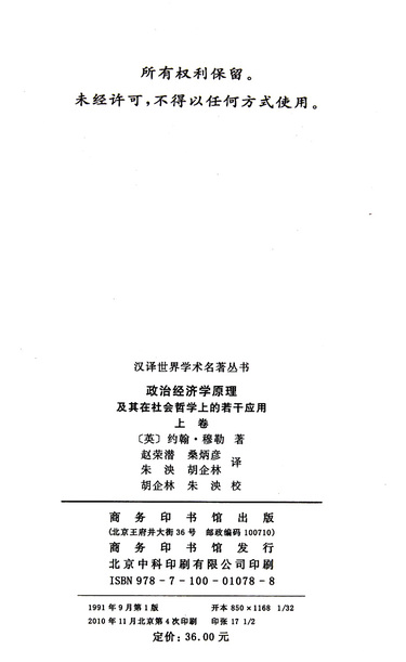 政治经济学原理(及其在社会哲学上的若干应用上)/汉译世界学术名著丛书
