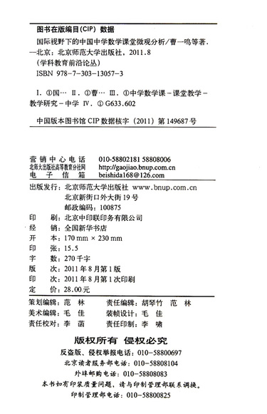 国际视野下的中国中学数学课堂微观分析/学科教育前沿论丛