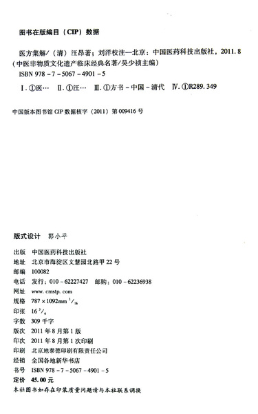 | 出版社 | 中国医药科技出版社 |