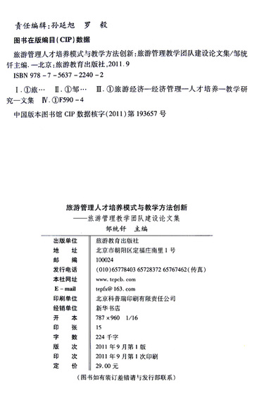 旅游管理人才培养模式与教学方法创新--旅游管理教学团队建设论文集