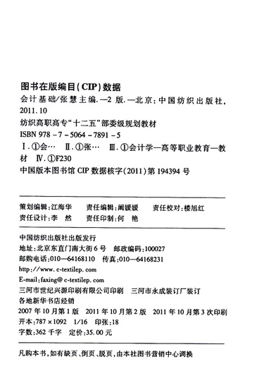 会计基础(第2版纺织高职高专十二五部委级规划教材)
