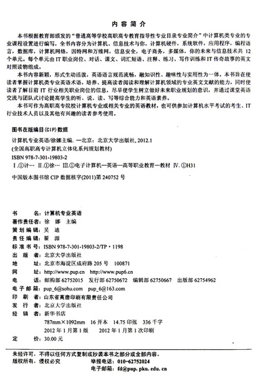 计算机专业英语(全国高职高专计算机立体化系列规划教材)