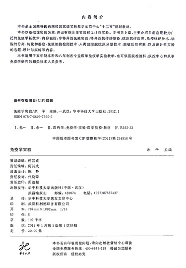 免疫学实验(供临床医学基础医学医学检验护理学等专业使用全国高等医药院校国家级实验教学示范中心十二五规划教材)