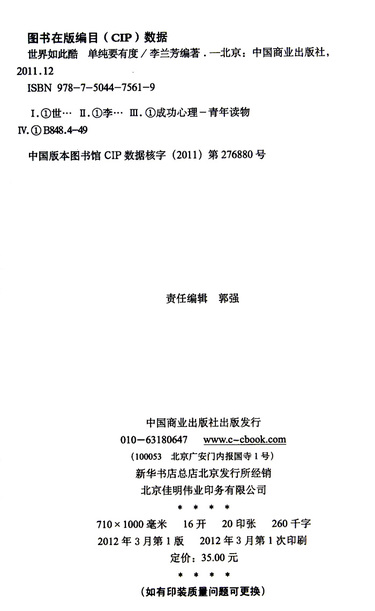 | 商品编码(ISBN) | 9787504475619 |