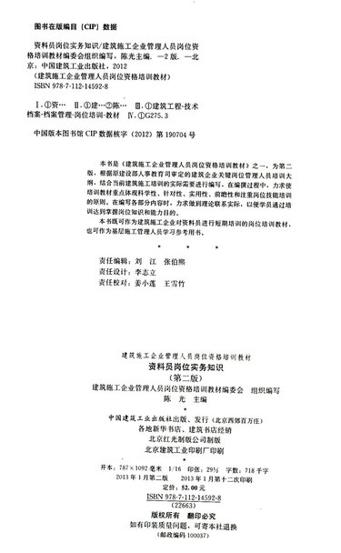 资料员岗位实务知识(第2版建筑施工企业管理人员岗位资格培训教材)