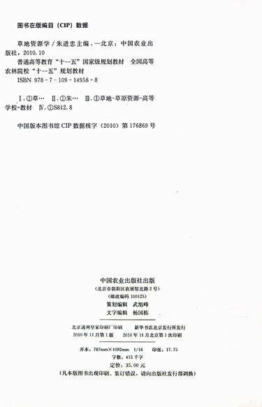 草地资源学(全国高等农林院校十一五规划教材)