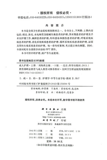 成人护理(上供中职护理助产等相关专业使用第3版全国卫生职业院校规划教材)