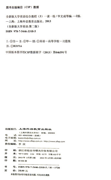 全新版大学英语综合教程(3第2版一课一练)