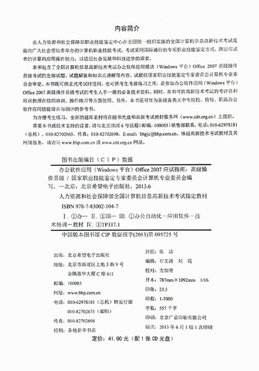 办公软件应用<Windows平台>Office2007应试指南(附光盘高级操作员级人力资源和社会保障部全国计算机信息高新技术考试指定教材)