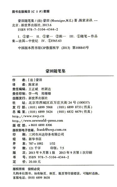 | 作者 | (法)蒙田 |
