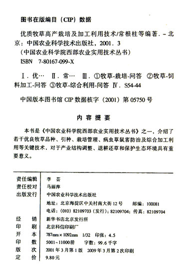 | 出版社 | 中国农业科技出版社 |