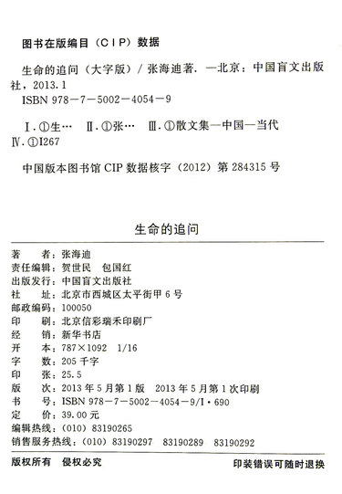 | 出版社 | 中国盲文出版社 |