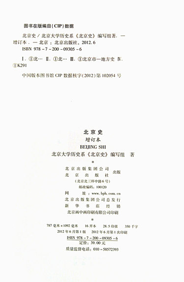 | 作者 | 北京大学历史系北京史编写组 |