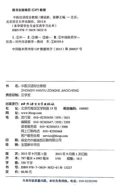 | 丛书名 | 中医汉语系列 |