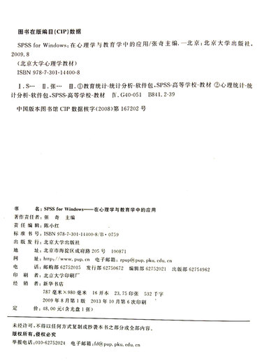 SPSS for Windows(附光盘在心理学与教育学中的应用北京大学心理学教材)