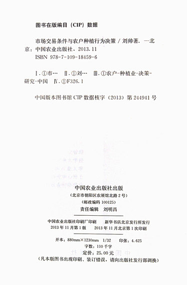 | 出版社 | 中国农业出版社 |