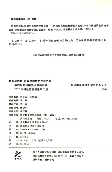 转型与创新--求索中国特色发展之路(第四届张培刚奖颁奖典礼暨2012中国经济发展论坛文集)