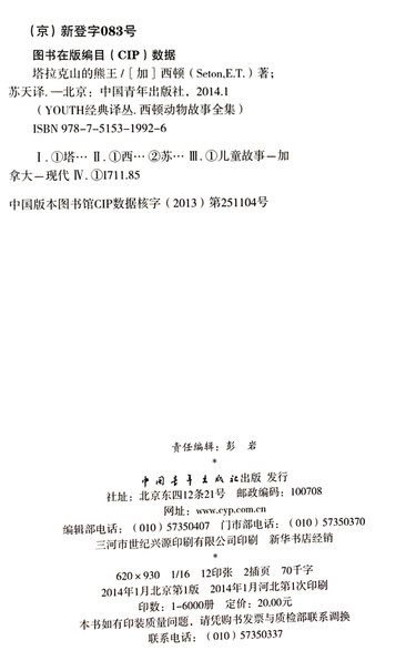 塔拉克山的熊王(西顿动物故事全集)/YOUTH经典译丛