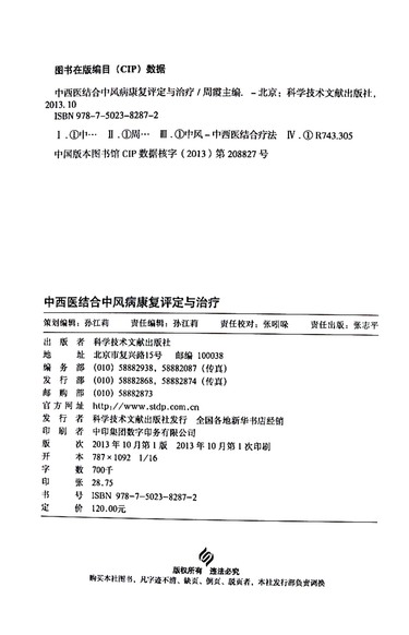 中西医结合中风病康复评定与治疗
