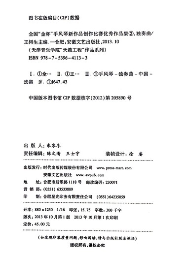 全国金杯手风琴新作品创作比赛优秀作品集(2独奏曲)/天津音乐学院天籁工程作品系列
