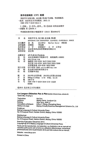 轻松学中文(4练习册法文版)