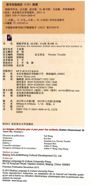 轻松学中文(1b练习册少儿版法文版)