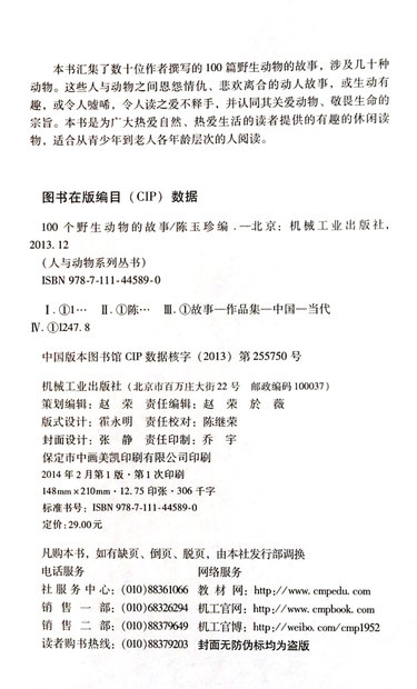 100个野生动物的故事/人与动物系列丛书