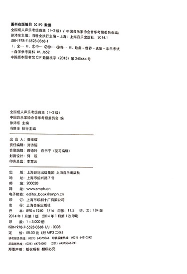全国成人声乐考级曲集(附光盘1-2级中国音乐家协会社会音乐水平考级教材)