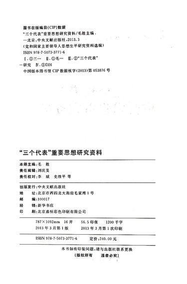 三个代表重要思想研究资料(精)/党和国家主要领导人思想生平研究资料选编