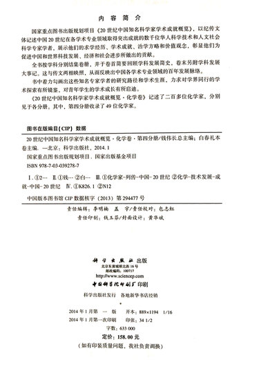 20世纪中国知名科学家学术成就概览(化学卷第4分册)(精)