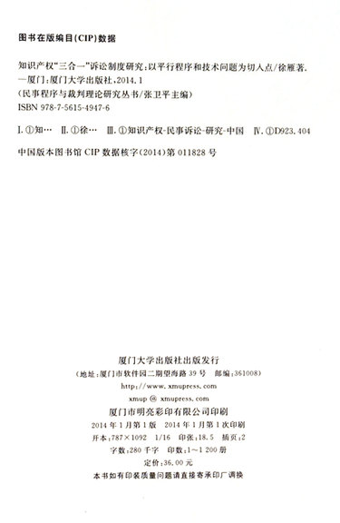 知识产权三合一诉讼制度研究--以平行程序和技术问题为切入点/民事程序与裁判理论研究丛书