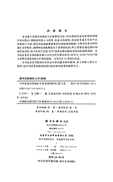中国农业经济地区差异及成因研究
