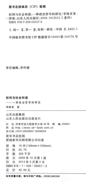 权利与社会和谐(一种政治哲学的研究)