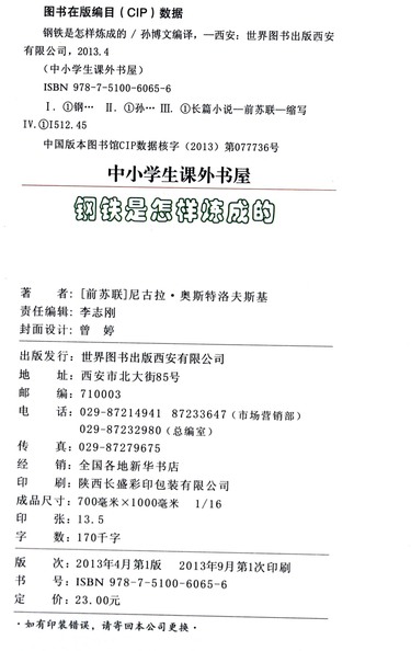 钢铁是怎样炼成的/中小学生课外书屋