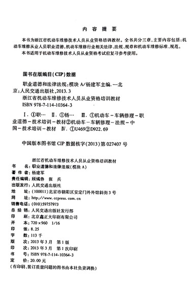 职业道德和法律法规(模块A浙江省机动车维修技术人员从业资格培训教材)