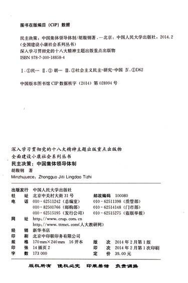 民主决策(中国集体领导体制)/全面建设小康社会系列丛书