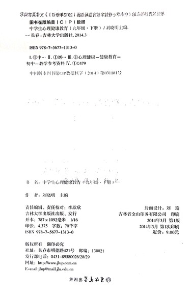 中学生心理健康教育(9下中学版)/心理健康教育系列丛书