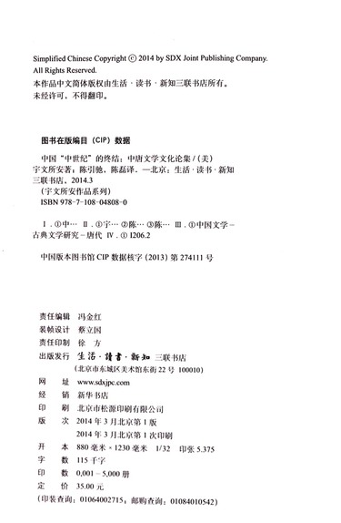 中国中世纪的终结(中唐文学文化论集)(精)/宇文所安作品系列
