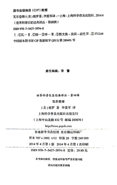 | 作者 | (美)梭罗 |