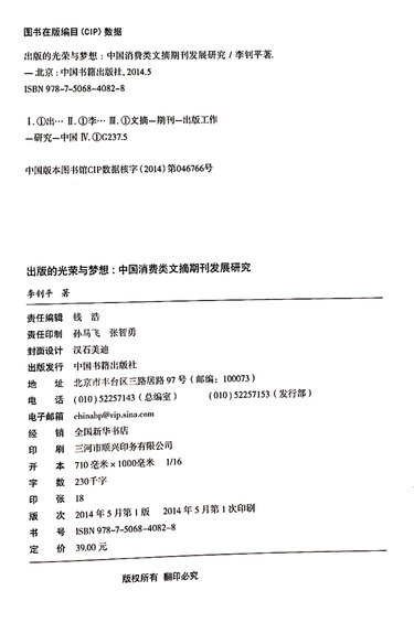 出版的光荣与梦想(中国消费类文摘期刊发展研究)