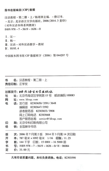 汉语教程(附光盘第2册上修订本语言技能类1年级教材对外汉语本科系列教材)