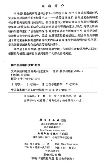 复杂疾病的遗传咨询/生命科学前沿