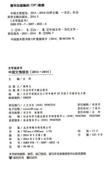 中国文情报告(2014版2013-2014)/文学蓝皮书