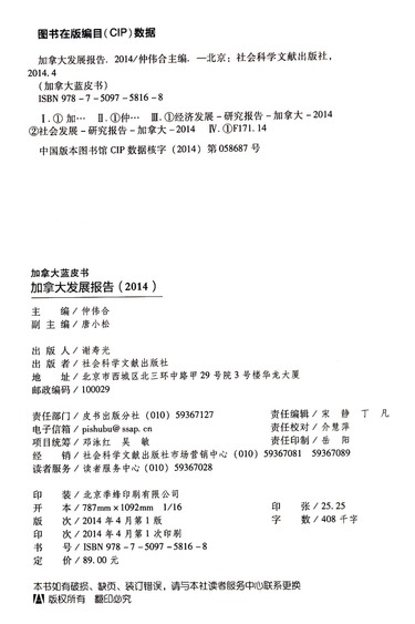加拿大发展报告(2014版)/加拿大蓝皮书