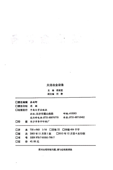 火法冶金设备(冶金设备系列教材)