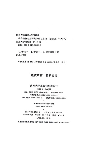社会经济定量研究方法与应用