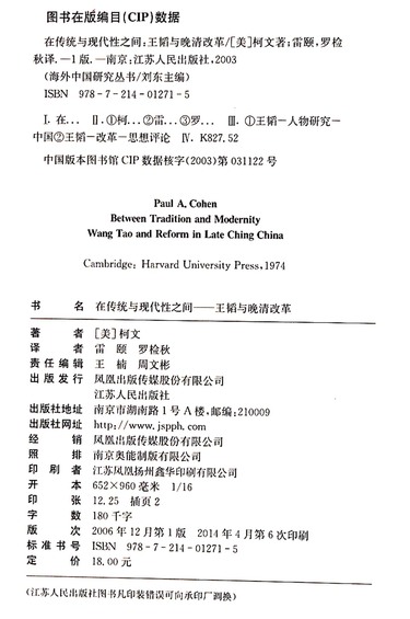 在传统与现代性之间(王韬与晚清改革)/海外中国研究丛书