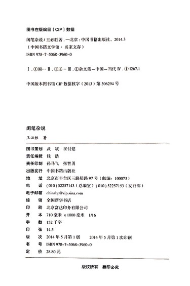 闲笔杂说/中国书籍文学馆